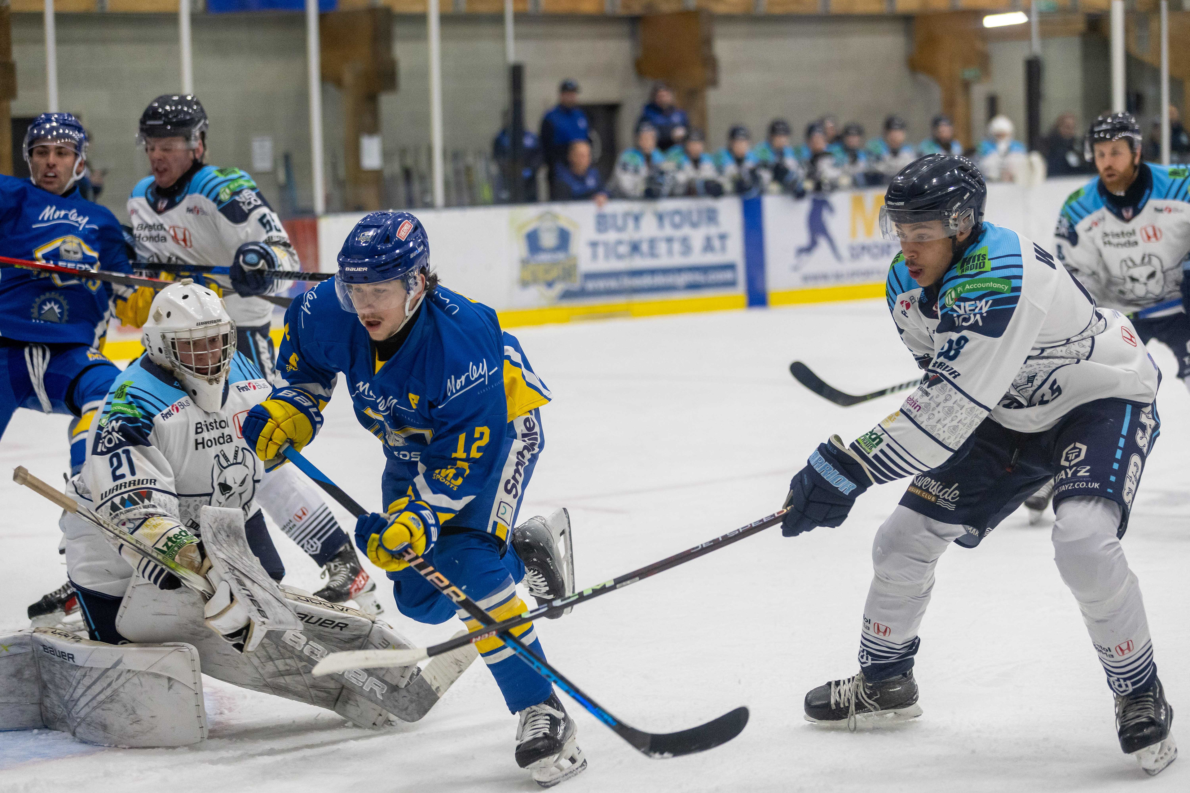 Leeds Knights (7) VS (5) Bristol Pitbulls, Planet Ice NIHL National Division at Planet Ice Leeds, United Kingdom taken on 14 January 2024. Some of my pictures were published in Yorkshire Evening Post and Yorkshire Post.